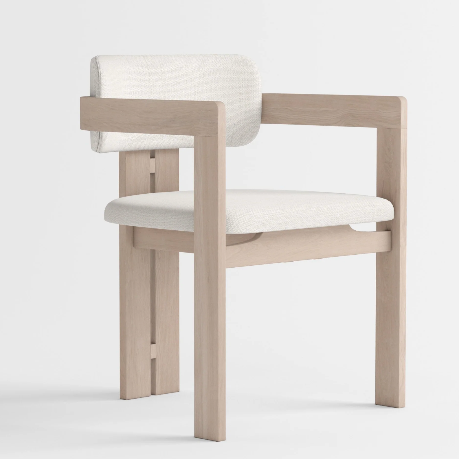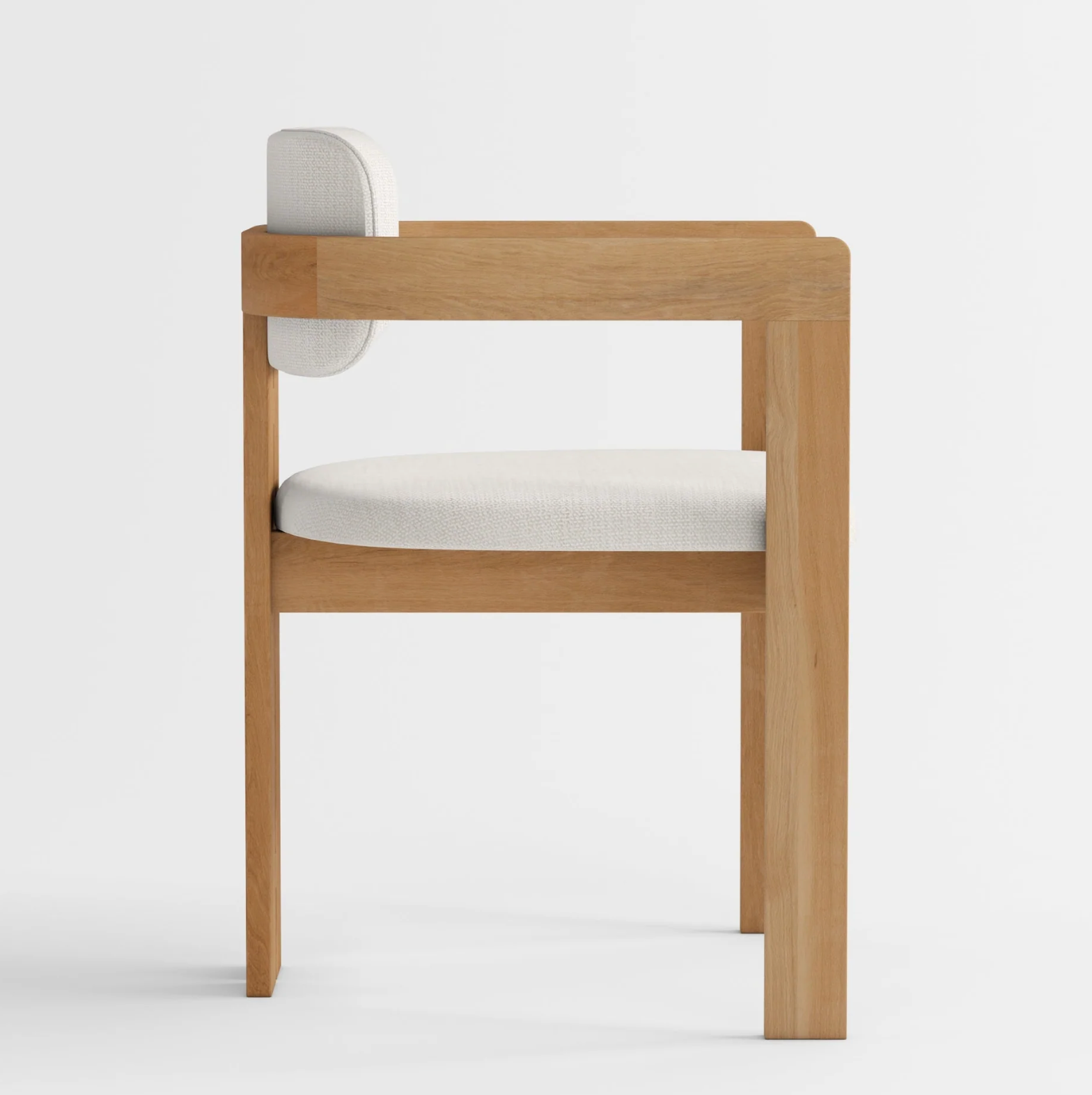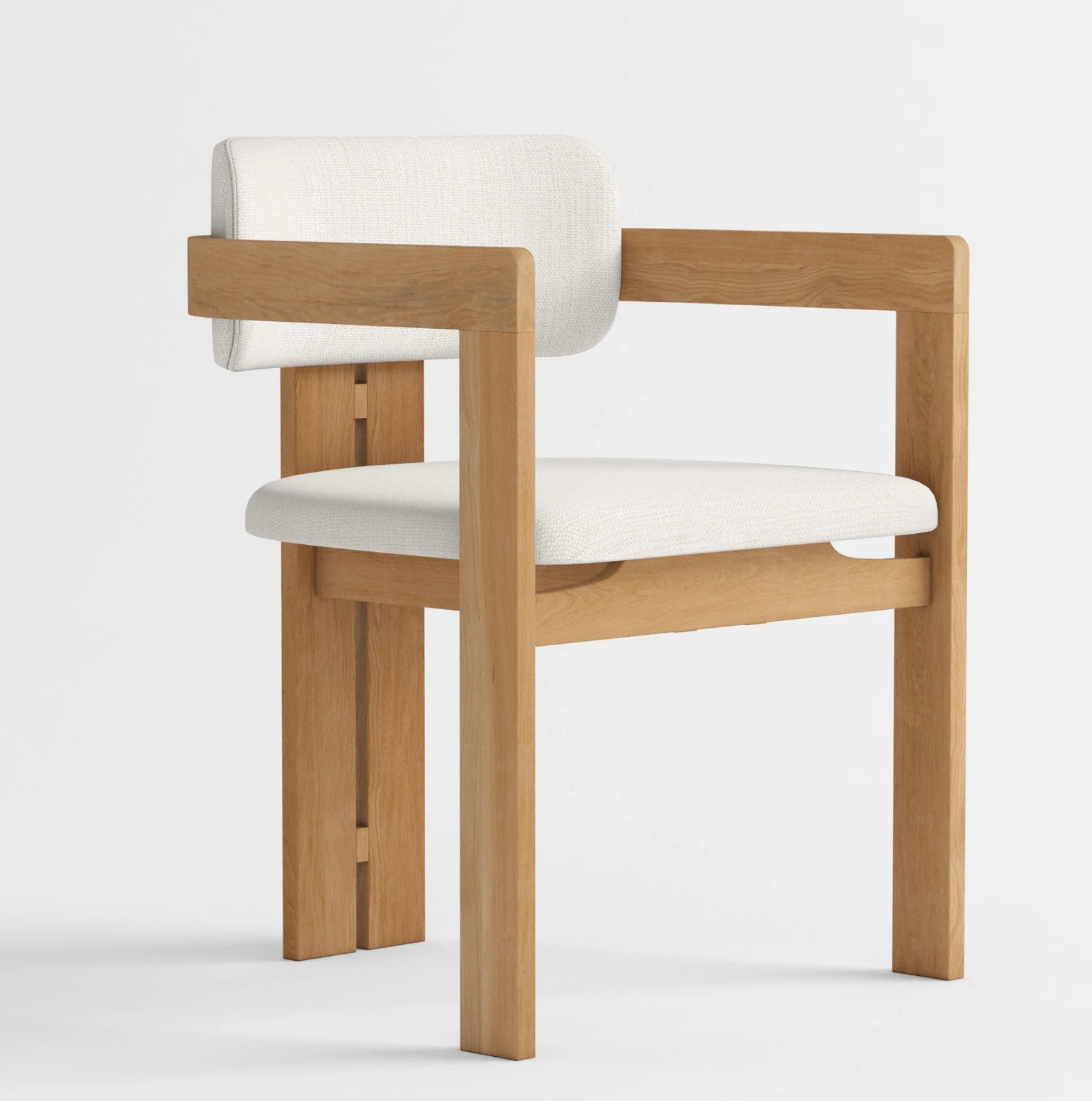 De Natsu Armstoel brengt de essentie van Japandi design tot leven met zijn warme, naturel massief eikenhouten frame en zachte crèmekleurige bekleding. Het strakke lijnenspel en de subtiele rondingen zorgen voor een harmonieuze balans tussen comfort en minimalistische esthetiek. Ideaal als eetkamerstoel of stijlvolle toevoeging in de woonkamer of werkruimte.